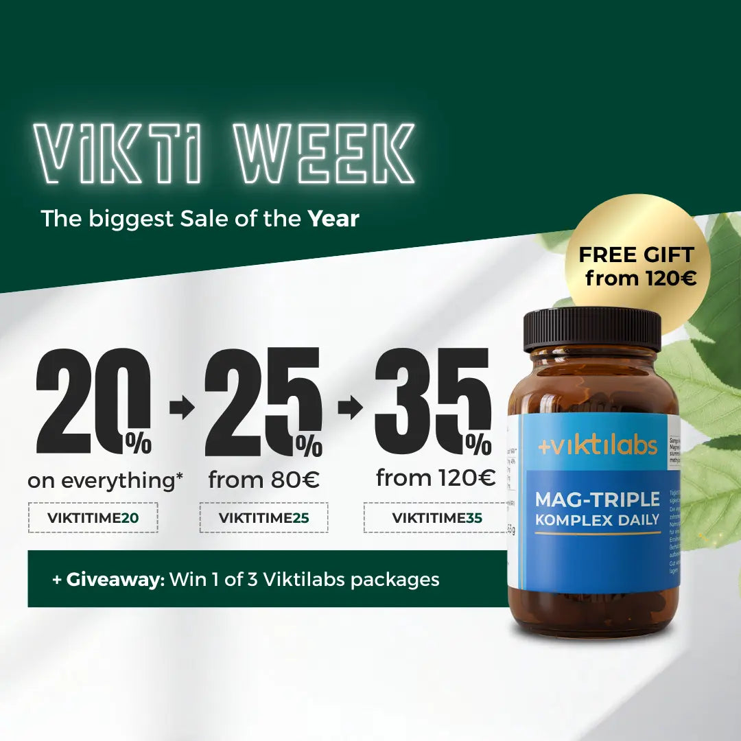 +Vikti follows the tradition of high-quality and select foods – known as "Viktualien" in German. Purity and richness form the foundation of all +Viktilabs dietary supplements. Pure effectiveness, controlled laboratory quality, and technological advancement are the logical extensions – this is what the "labs" in +Viktilabs stands for.
